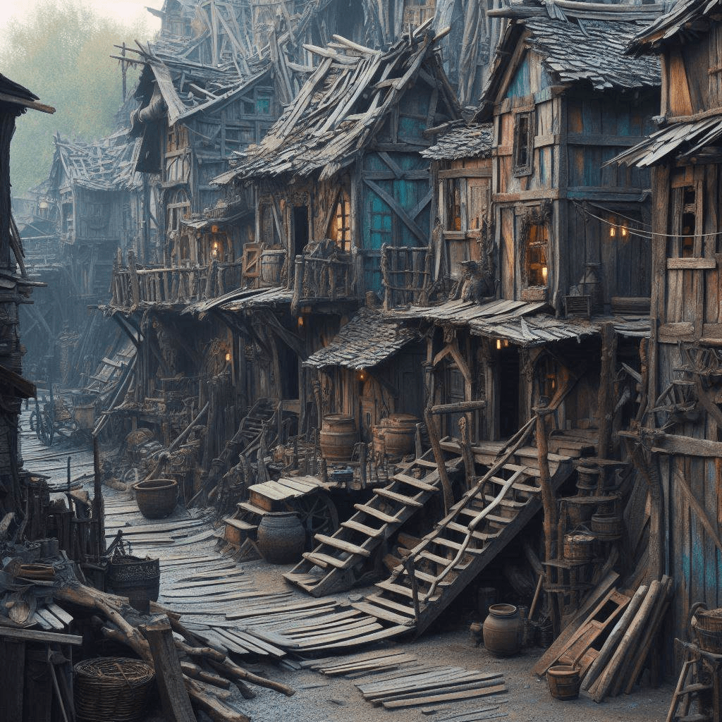 A engenhosidade dos goblins, por outro lado, era cheia de itens inusitados. Vimos casas feitas inteiramente de portas, outras feitas de tudo aquilo que sobra de uma engenhoca, até mesmo uma casa que, simplesmente, ganhou rodas e saiu pela rua, quase nos atropelando. O goblinzinho teve a audácia de pronunciar alguma expressão que eu acredito ter sido um xingamento. Ao que Toshinori respondeu à altura.